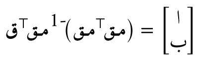 فإذا كانت لدينا مصفوفة تمثل هذه القياسات، فإننا نحتاج إلى إيجاد شبه عكس المصفوفة لنتمكن من حساب المعاملات ا وب بدقة أكبر. باستخدام شبه عكس المصفوفة، يمكننا حساب المعاملات بطريقة تأخذ في الاعتبار جميع القياسات التي قمنا بها، مما يؤدي إلى تقدير أكثر دقة لمعادلة الحائط.