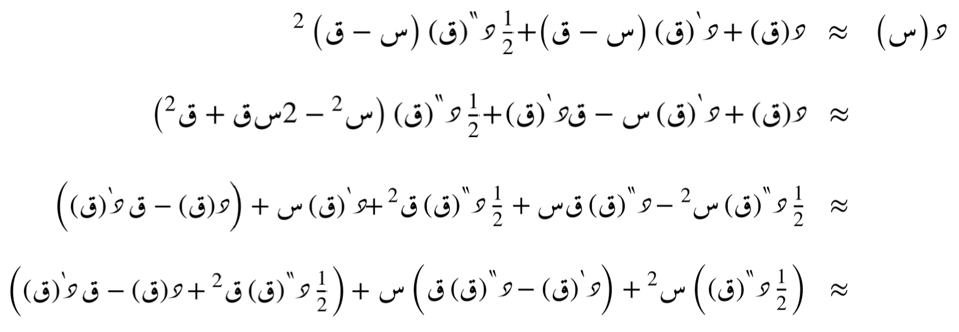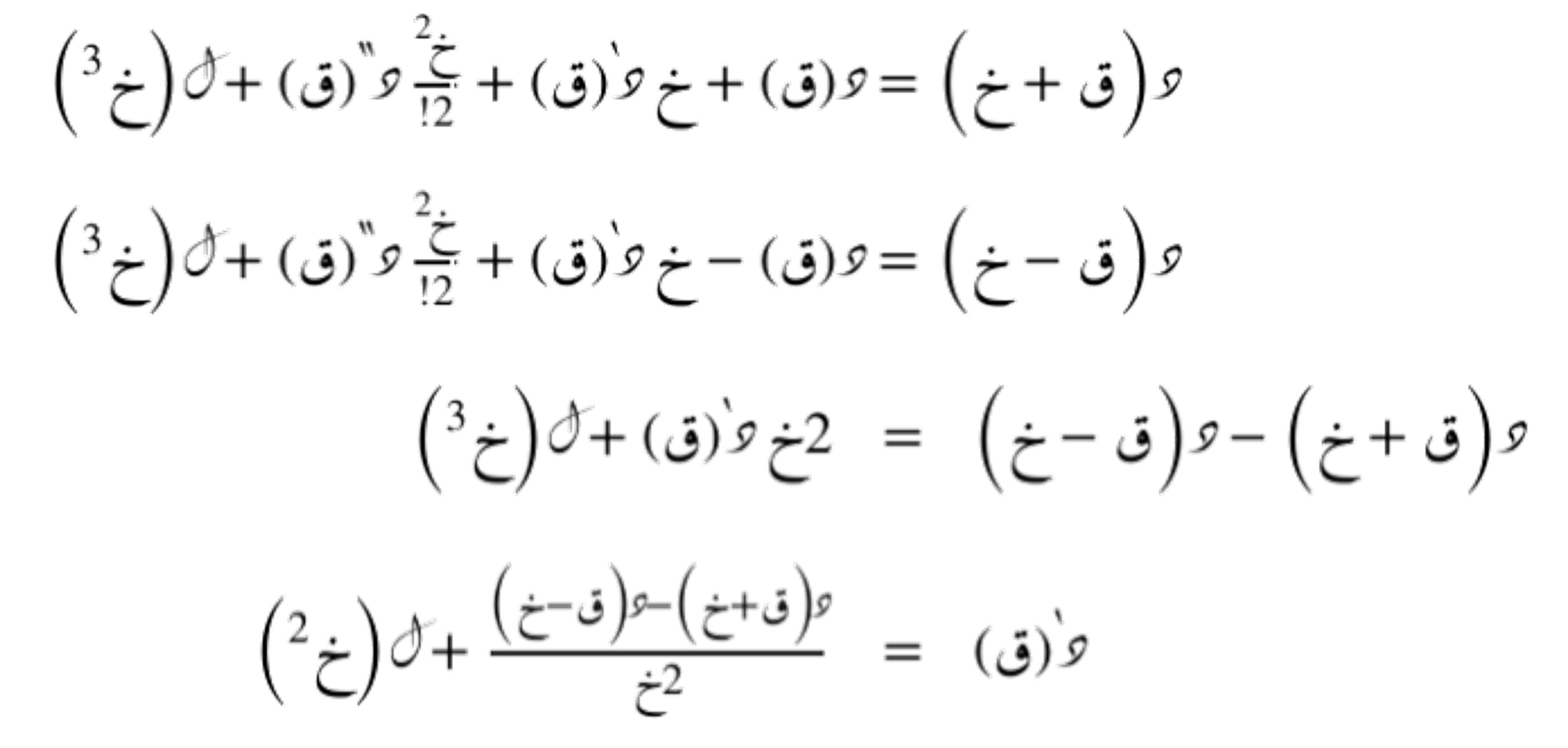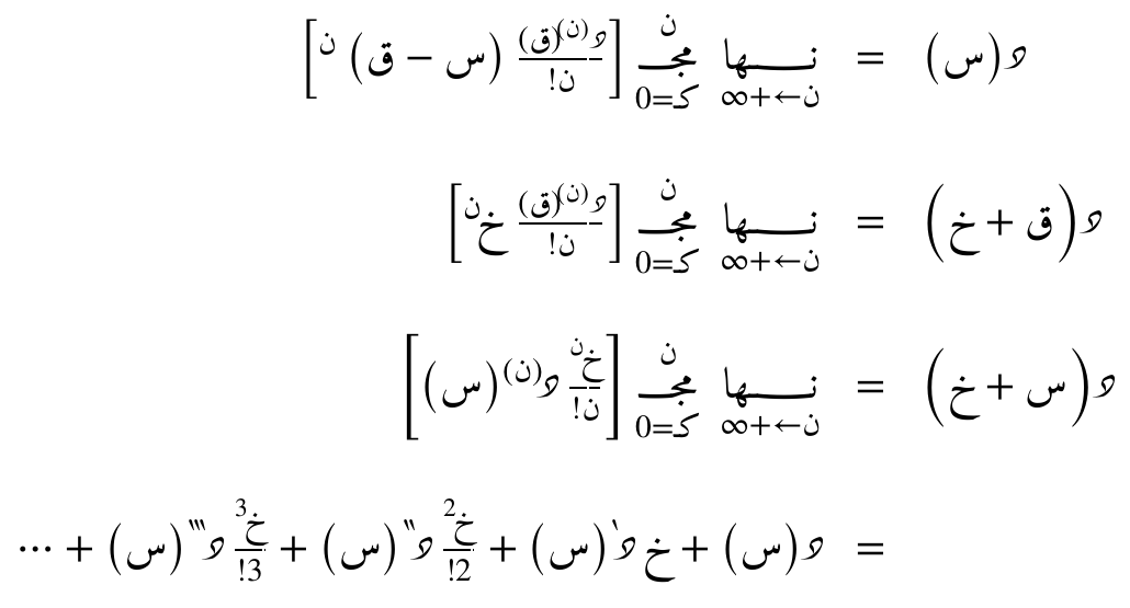نحصل على هذه العِبارات عن طريق المتسلسلة الحدودية التفاضلية التي تُقرّب أي دالّة د(س) حول النقطة ق.