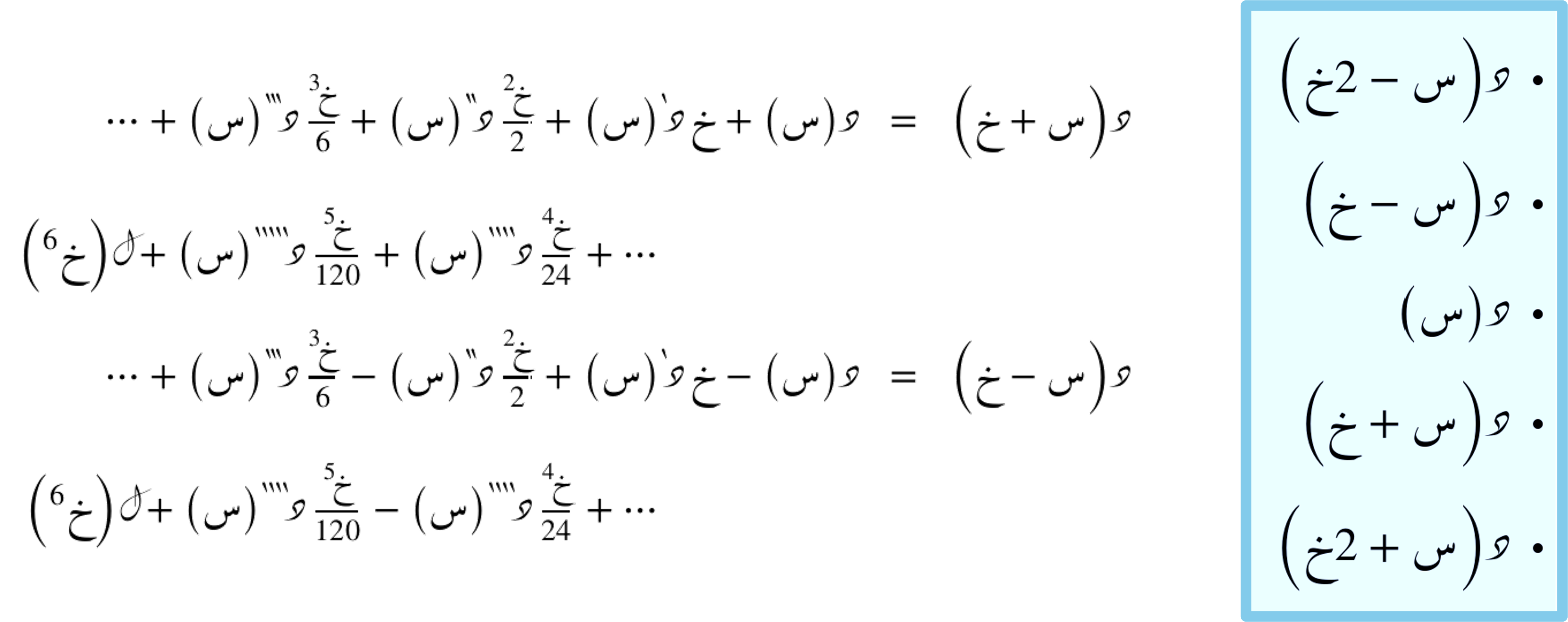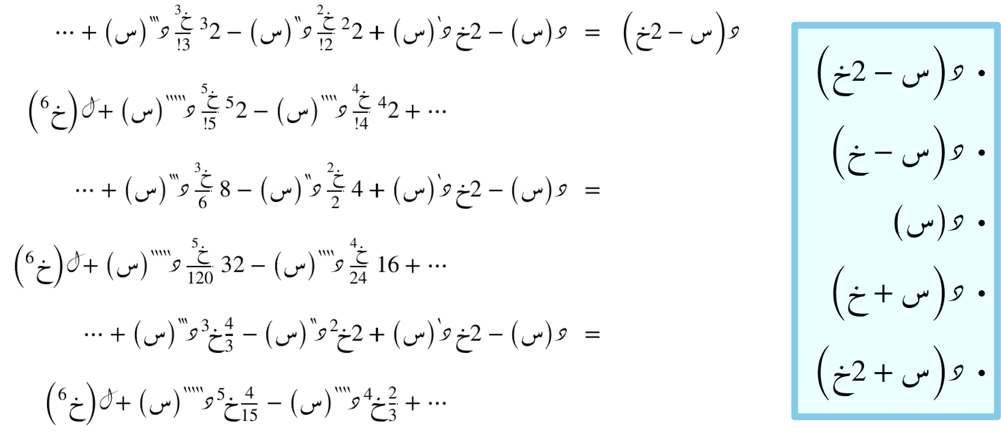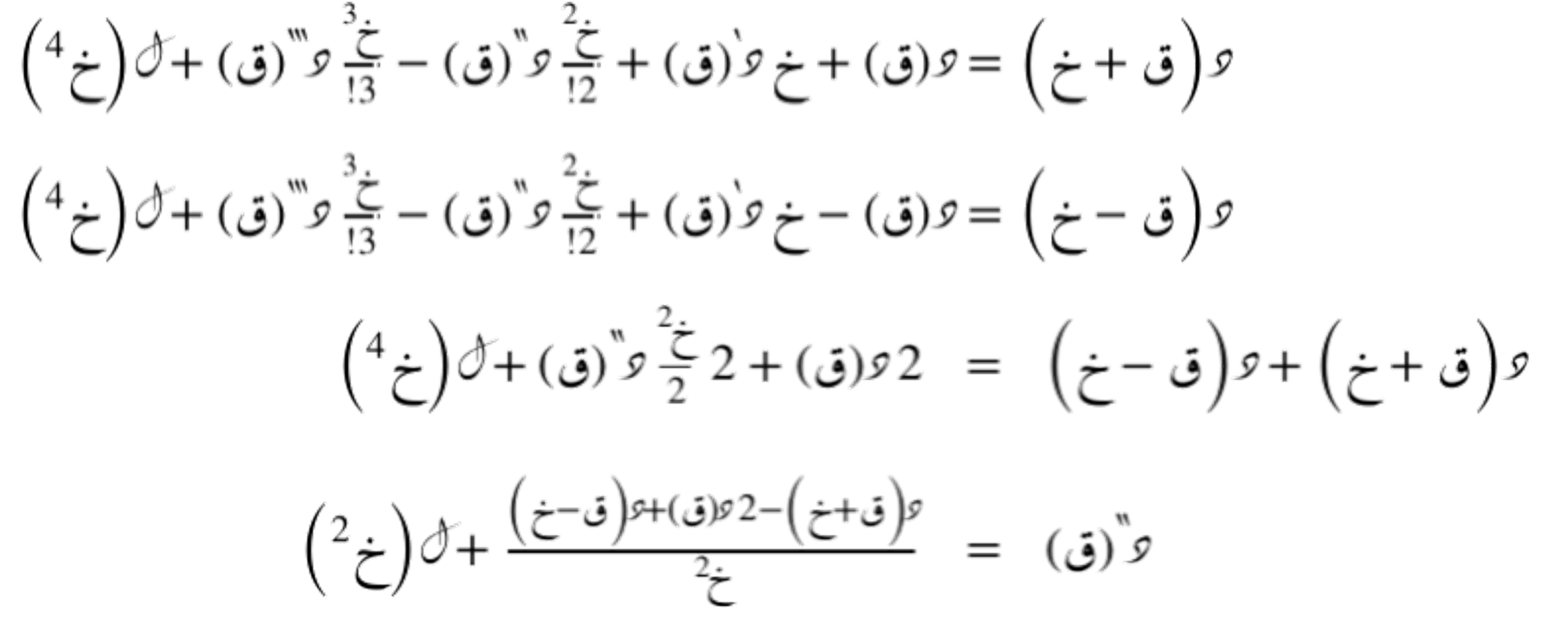 نحصل على هذه العِبارات عن طريق المتسلسلة الحدودية التفاضلية التي تُقرّب أي دالّة د(س) حول النقطة ق.