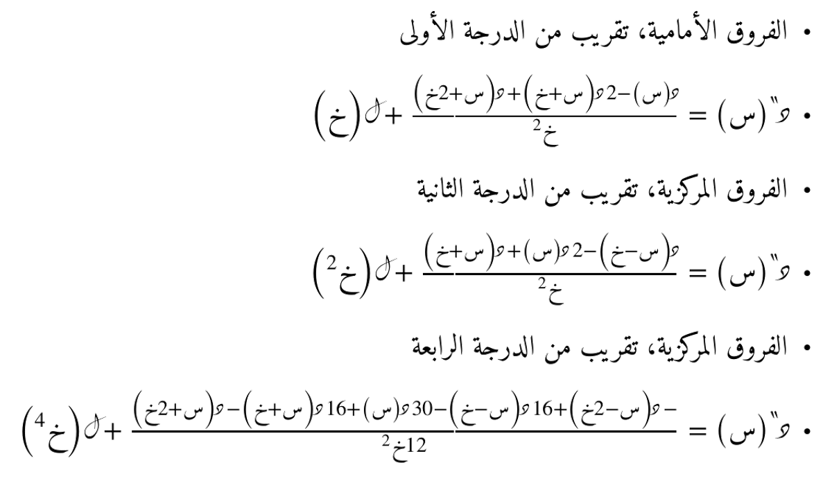 هناك عدة طرق لحساب المشتقات الرقمية، وسنستعرض بعضها هنا: