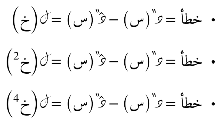 كلما ارتفعت درجة التقريب (أي استخدمنا صيغة من رتبة أعلى)، أصبح الخطأ أصغر بكثير لنفس قيمة خ. كما نلاحظ أن الخطأ يتناقص بسرعة أكبر مع تصغير خ عند استخدام تقريبات من درجات أعلى. هذا يؤكد أهمية اختيار صيغة تقريب مناسبة للحصول على نتائج دقيقة، خاصة عند الحاجة إلى تقليل الخطأ العددي.