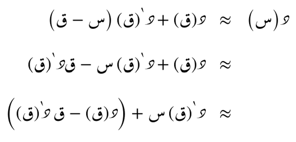 الدرجة الأولى من المتسلسلة الحدودية التفاضلية تعني أننا نستخدم قيمة الدالة ومشتقتها الأولى عند النقطة.