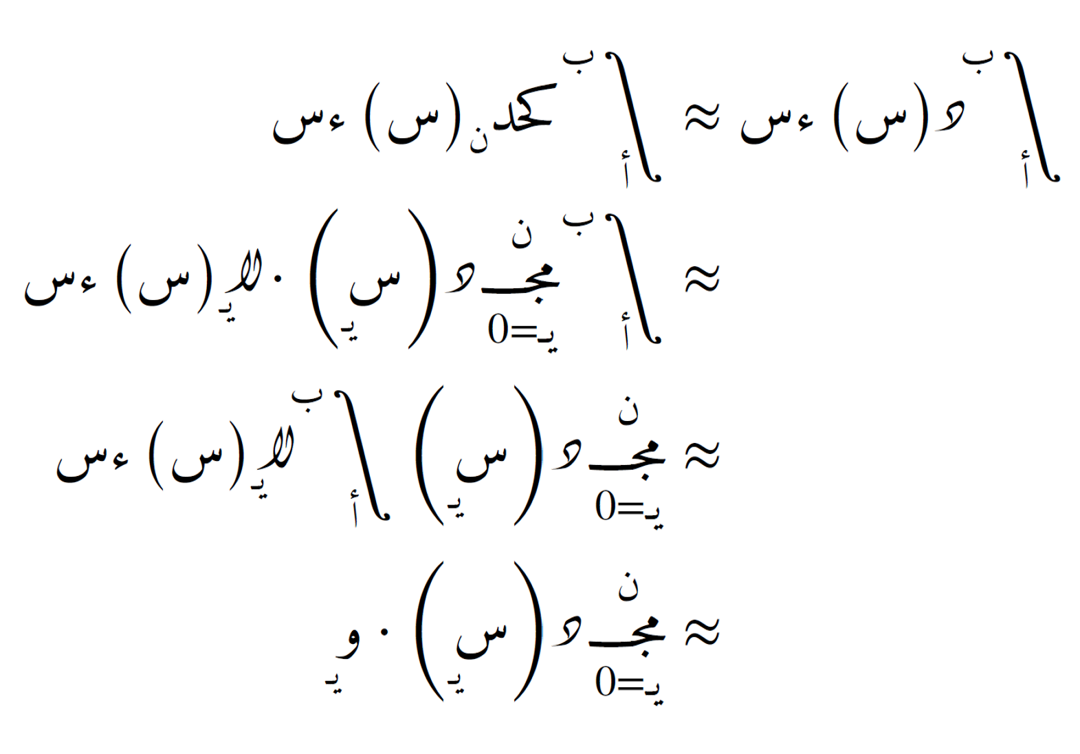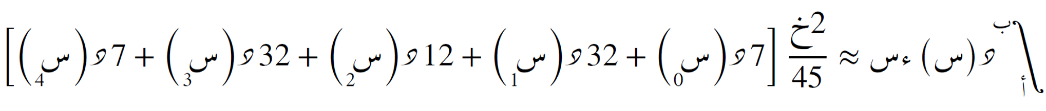 حيث ويـ هي الأوزان المحسوبة من تكامل كثير الحدود المتقطع