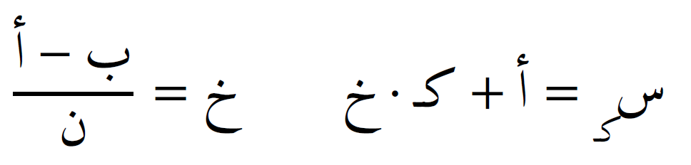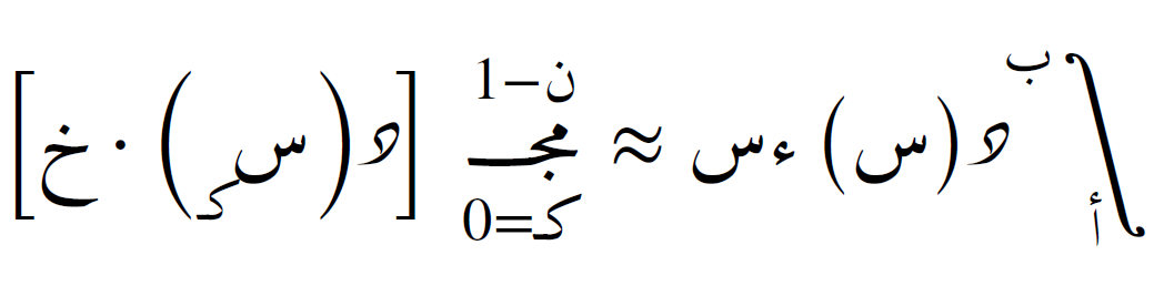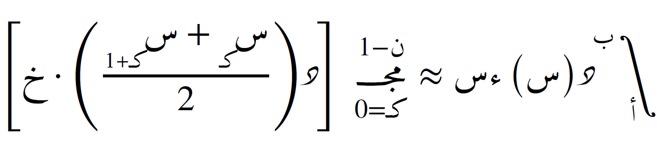 وإذا تم تقسيم الفترة إلى ن فترات فرعية متساوية، فإن الصيغة تصبح: