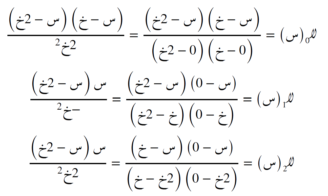 نحسب الدوالّ الأساس اللاغَرَنجية كما يلي: